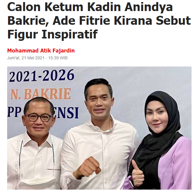 read more[FEATURED] Calon Ketum Kadin Anindya Bakrie, Ade Fitrie Kirana Sebut Figur Inspiratif